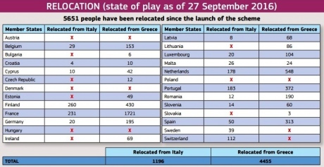 Загалом 5651 особа була переселена від початку дії рішення ЄС.