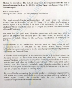 Пропонується спрямувати до Києва офіційний заклик асамблеї щодо розслідування подій на Майдані та в Одесі, щоби "примусити" Україну використати всі наявні механізми для такого розслідування.