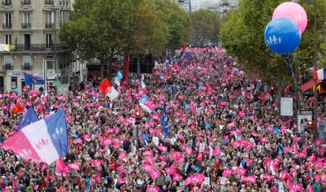 Тисячі людей у неділю вийшли на вулиці Парижа, протестуючи проти легалізації одностатевих шлюбів та усиновлення дітей одностатевими парами.