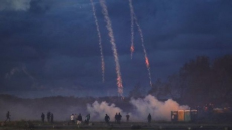 Група з 50 мігрантів кидала в поліцейських пляшки та каміння, ті у відповідь застосовували димові шашки.