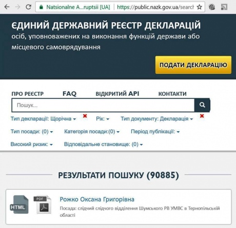Зазначимо, що в реєстр НАЗК, окрім щорічних декларацій, подаються також виправлені декларації, декларації перед звільненням, декларації кандидатів та повідомлення про зміну майнового стану, через що загальна кількість записів у базі є більшою, а від одного посадовця подекуди доступні для перегляду два та більше документів.
