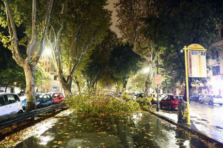 У неділю інтенсивні дощі обрушилися на столицю країни Рим. В одному з районів міста очевидцям вдалося зняти торнадо. Через негоду в більшості районах дороги перекриті поваленими деревами.