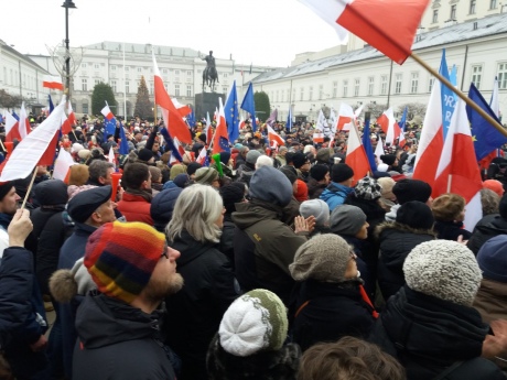 Повідомляється про мирний перебіг протестів, хоча влада і стягує до Варшави півтисячі поліцейських – для підтримки порядку на акціях опозиції і недільному футбольному матчі.