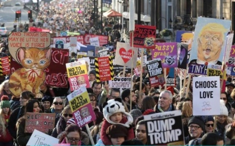 У Лондоні, де протестувальники за планом мають пройти від будівлі посольства США до Трафальгарської площі. До участі в акції зголосилися 10 тисяч осіб, однак зараз організатори заявляють про щонайменше 80 тисяч людей. Учасники тримають плакати з гаслами "Ні расизму, ні Трампу!, "Будуйте мости, а не стіни".