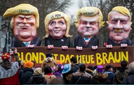 На ще одній платформі на колесах було згруповано Трампа, Марін Ле Пен з Національного Фронту, нідерландського політика Герта Вілдерса з Партії свободи та Адольфа Гітлера з написом: "Блонд - новий коричневий".