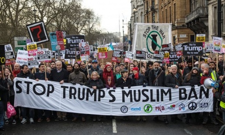 У Лондоні проходить багатотисячний протест проти указу президента США Дональда Трампа щодо заборони в'їзд у США громадянам семи країн, а також проти його візиту до Британії.