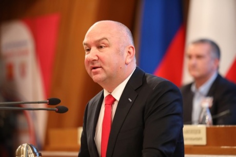 Глава проросійської "Сербської народної партії" Ненад Попович відвідав окупований Крим і виступив у будівлі парламенту в Сімферополі.