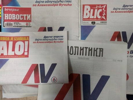 За кілька днів до президентських виборів у Сербії сім провідних газет країни одночасно вийшли з однаковою першою шпальтою на підтримку діючого прем’єра і основного фаворита Александра Вучича.