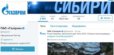 Газпром мовчить про програш Україні, останній твіт - про струмок Тризуб