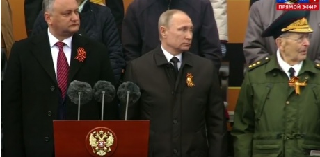 Президент Молдови Ігор Додон святкує 9 травня в Москві, куди його запросив президент Росії Володимир Путін. На трибуні під час параду до Дня Перемоги Додона помітили поруч із главою Кремля.