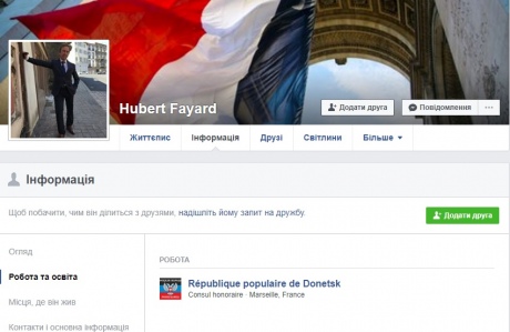 Регіональний французький політик Юбер Файяр з департаменту Буш-дю-Рон проголосив себе "почесним консулом Донецької народної республіки" у Франції.