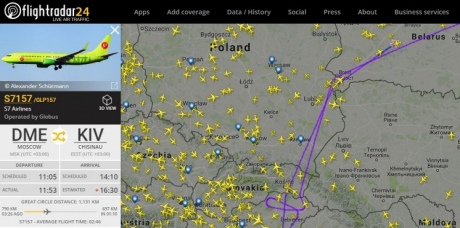 Літак із Дмитром Рогозіним на борту вилетів з Москви у Кишинів. Дані сайту flightradar24 показують зниження висоти і спроби приземлитися в аеропорту столиці Угорщини.