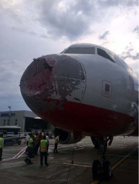 Як пояснив пілот Олександр Акопов, на висоті 4 тисячі футів літак потрапив в грозу, якою накрило Стамбул. Величезний град розбив носову частину літака і скло в кабіні пілотів.