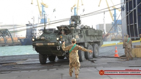 Бронемашини "Страйкер" прибули до грузинського міста Поті. Із західної Грузії техніка пройде на схід країни і прибуде на військовий аеродром Вазіані в передмісті Тбілісі.