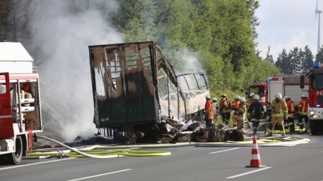 Поліція Німеччини підтвердила загибель 18 осіб, яких розшукували після того, як загорівся туристичний автобус у Баварії внаслідок ДТП.