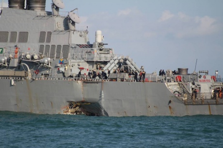 Ракетний есмінець ВМС США John S McCain зіткнувся торговим судном поблизу Сингапуру.