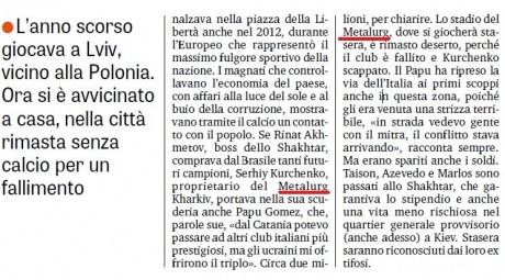 У статті також згадується харківський футбольний клуб "Металіст", який автор чомусь назвав "Металургом", і стадіон ОСК "Металіст", який також названий "Металург".