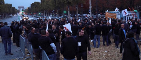 Action syndicale @FNSEA @JeunesAgri sur les champs Élysée pour défendre la survie des #Paysants 🇫🇷 face aux dogmatismes de @EmmanuelMacron pic.twitter.com/bgxEzmij3r