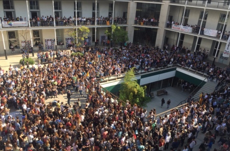 Повідомляється, що близько півтисячі студентів головного університету Барселони залишили заняття, щоб приєднатися до протесту.