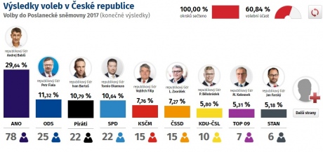 Популістична партія ANO, заснована одним із найбагатших людей Чехії та колишнім міністром фінансів Андрієм Бабішем, отримала 29,64% голосів виборців і 78 із 200 місць у парламенті. Бабіш тепер стане новим прем’єром, але для створення більшості його партії необхідно формувати коаліцію з іншими партіями.