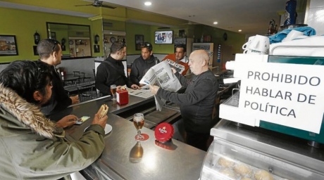 | "Заборонено говорити про політику" - напис в одному з барів Камбрільса. фото Diari de Tarragona |
