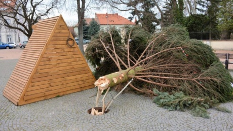 Через сильний вітер було зламано різдвяну ялинку на головній площі словацького міста Ступава.
