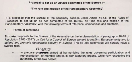 "Спеціальна група Бюро матиме два завдання. По-перше підготувати бачення, як гармонізувати правила регулювання участі та репрезентації держав-членів в обох статутних органах, при цьому зберігаючи повну повагу незалежності двох органів. По-друге, підготувати бачення щодо ролі та місії Парламентської Асамблеї як статутного органу Ради Європи та пан-європейського форуму для міжпарламентського діалогу, метою якого є вплив на всіх держав-членів", - йдеться у документі.
