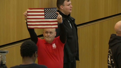 Один із протестувальників вигукував, що "вони зібрались тут, аби здійснити ненасильницький і мирний арешт громадянина". Дехто тримав у руках американський прапор.