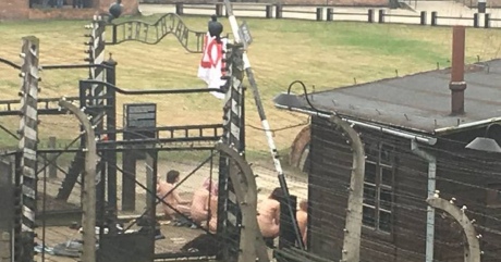 Нагадаємо, що у березні минулого року учасники гепенінгу роздяглися і скували себе кайданками, а на воротах з написом "Arbeit Macht Frei" повісили банер з написом "Love", двоє з них закололи вівцю. Учасники акції стверджують, що це був антивоєнний протест.