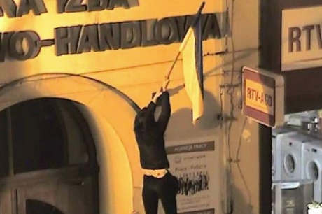 Правопорушення вчинили 20-річна Катажина С., 21-річна Марта В. та 25-річний Анджей Б. За знищення українського прапору вони повинні заплатити фірмі з посередництва праці 150 злотих. Кожний з них заплатить також 300 злотих штрафу.