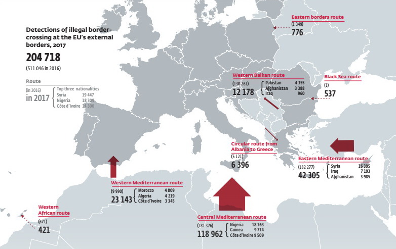 У 2017 році суттєво знизилась кількість мігрантів, які нелегально перетнули зовнішні кордон ЄС.