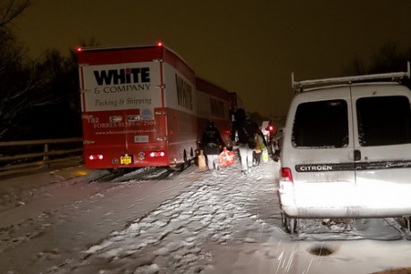 Сніговий хаос у Британії: сотні машин застрягли на ніч на дорогах