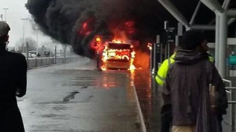 В аеропорту "Лондон-Станстед" скасували сотню рейсів після того, як пожежа спалахнула в одному з автобусів біля термінала.