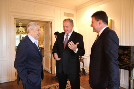 | Джордж Сорос, президент Словаччини Андрей Кіска і президент генасамблеї ООН Мірослав Лайчак у Нью-Йорку |