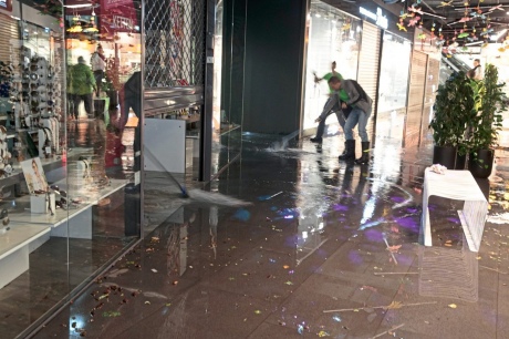 Проливний дощ почався в понеділок по обіді. У торговому центрі Citypark внаслідок опадів вода залила перший поверх і підземний паркінг та потрапила у магазини. За даними пожежників, рівень води у приміщенні становив 30 сантиметрів.