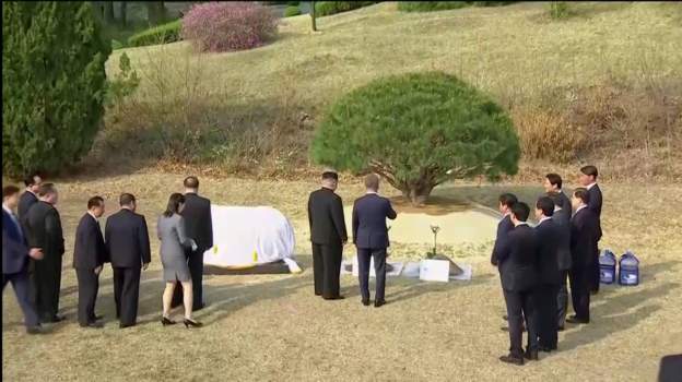 Під час церемонії сестра Кім Чен Ина допомогла йому одягнути білі рукавиці. Він із лідером Південної Кореї разом поклали останню лопату землі. Потім Кім заявив, що до обох країн прийшла "нова весна".