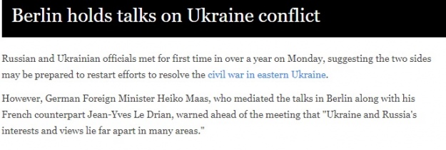 Стаття вийшла 11 червня на англомовній версії "Німецької хвилі" і присвячена вчорашній зустрічі глав МЗС країн нормандської четвірки у Берліні.