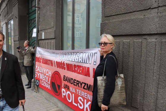 Троє поляків принесли із собою банер із написом: "Сусіди українці, застерігаємо, досить брехні і досить мовчання. Жодних символів і знаків бандеризму та УПА на теренах Польщі". Люди, які тримали цей банер не супроводжували колону, а лише стояли обабіч дороги, якою йшли учасники маршу. До кінцевої точки – українського військового цвинтаря – люди дійшли без інцидентів.