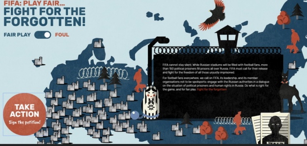 Фракція "Зелених" у Європарламенті запустила акцію, яка має привернути увагу футбольних вболівальників до порушень прав людини у Росії, де незабаром розпочнеться Чемпіонат світу з футболу-2018.