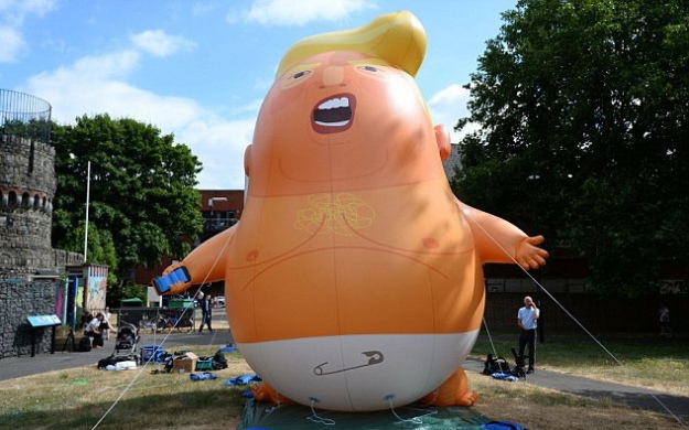6-метрове надувне немовля має помаранчевий колір, сердите обличчя та зачіску, як у президента США. У руці він тримає смартфон. Таким чином активісти намагалися висміяти запальний характер голови Білого дому та його захоплення соцмережами.