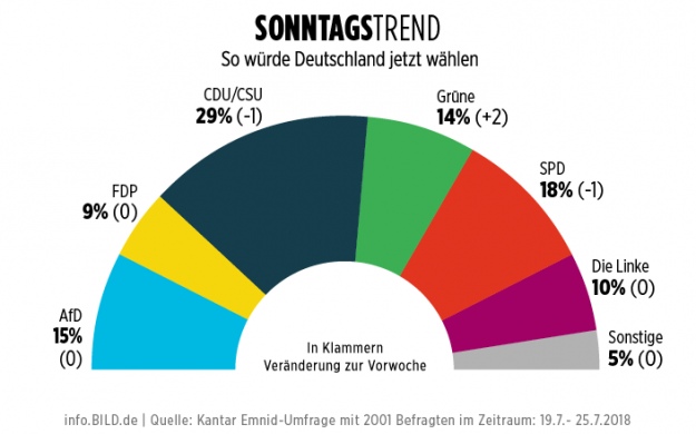 Утім, рейтинг блоку ХДС/ХСС все одно залишається вищим, ніж у конкурентів. Рейтинг Соціал-демократичної партії Німеччини (СДПН) впав на один відсоток і становить 18%.