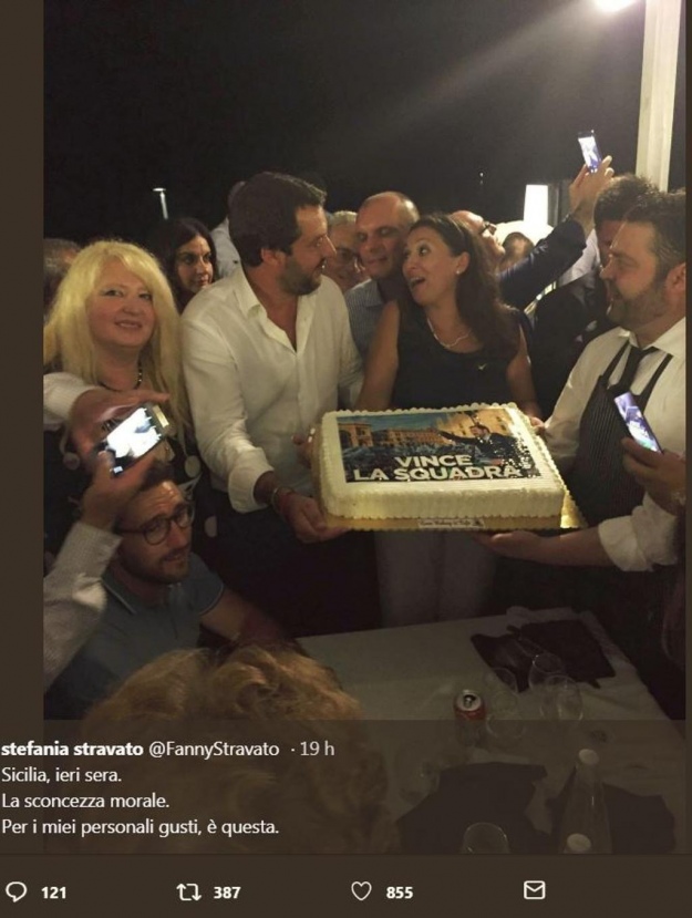 "Ввечері 14 серпня, коли у Генуї рятувальні команди намагалися знайти живих і дістати загиблих з-під уламків мосту Моранді, а вся Італія була спустошена трагедією, міністр внутрішніх справ Маттео Сальвіні був на партійному прийнятті в провінції Мессіна" - зазначає газета.