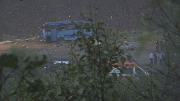 Інформація про аварію надійшла після 17:00 суботи. За попередніми даними, водій автобуса не впорався з керуванням через мокрий асфальт, врізався у два авто на своєму шляху і виїхав за межі проїжджої частини. Автобус скотився у 20-метрову ущелину і впав на бетонну платформу під автострадою.