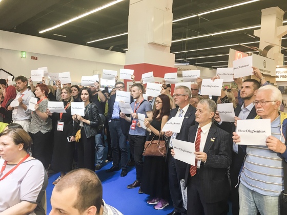 На українському стенді книжкової виставки у Франкфурті пройшли читання на підтримку Олега Сенцова та інших політв’язнів.