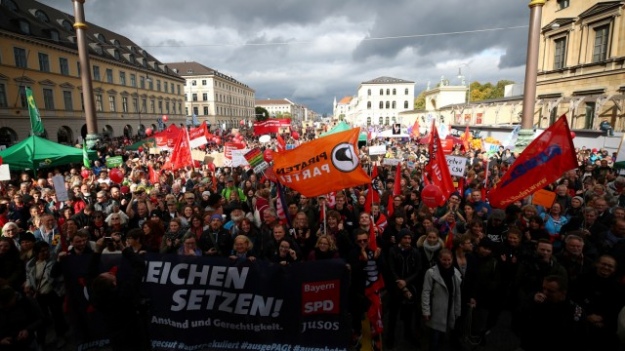 Демонстрація проходить під гаслом "Час настав – разом проти політики страху" і спрямована проти розширення прав поліції і розвороту вправо політики Баварії.