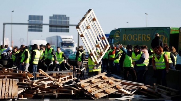 У масштабних акціях протесту у Франції проти підвищення цін на паливо на вихідних взяли участь майже 300 тисяч осіб, які паралізували трафік навколо більш ніж 2 тисяч стратегічних об'єктів.