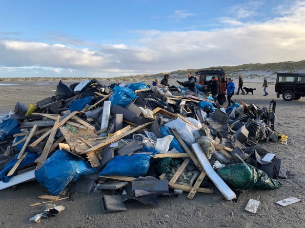 Об'єкти, включаючи пластмасу та полістирол, продовжують припливати на берег голландських пляжів, а місцеві жителі допомагають в операції з очищення.