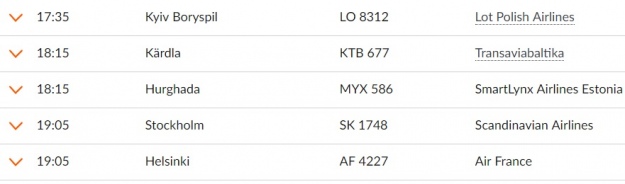 На сайті Талліннського аеропорту рейс з київського аеропорту "Бориспіль" вказаний Kyiv Boryspil.