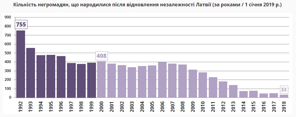 За даними управління у справах громадянства і міграції Латвії, 2014 року негромадянами було зареєстровано 74 дитини, у 2015 році - 77 дітей, в 2016 році - 47 дітей, у 2017 році - 51 дитина, а в 2018 році - 33 дитини.