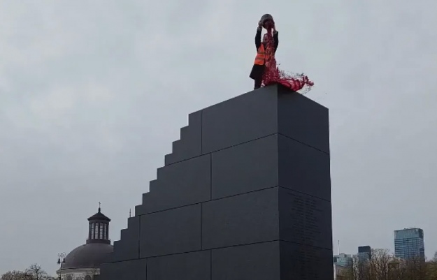 У Варшаві екоактивіст облив штучною кров’ю пам’ятник жертвам Смоленської катастрофи